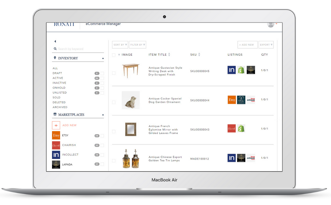 “Expecting these small businesses to list and manage hundreds and sometimes thousands of items across multiple marketplaces, their website and social media with spreadsheets or word documents is all but impossible. If you consider the internet like the eCommerce freeway, there are literally no on-ramps for sellers of unique and constantly changing inventory. Others have tried to solve this complicated problem. No one was able to, until now,” says Ronati Founder and CEO Stacey Tiveron. “We created Ronati both with and for dealers to address the technology needs of their business. Our job is to get these sellers not only on the freeway but in the fast lane.”